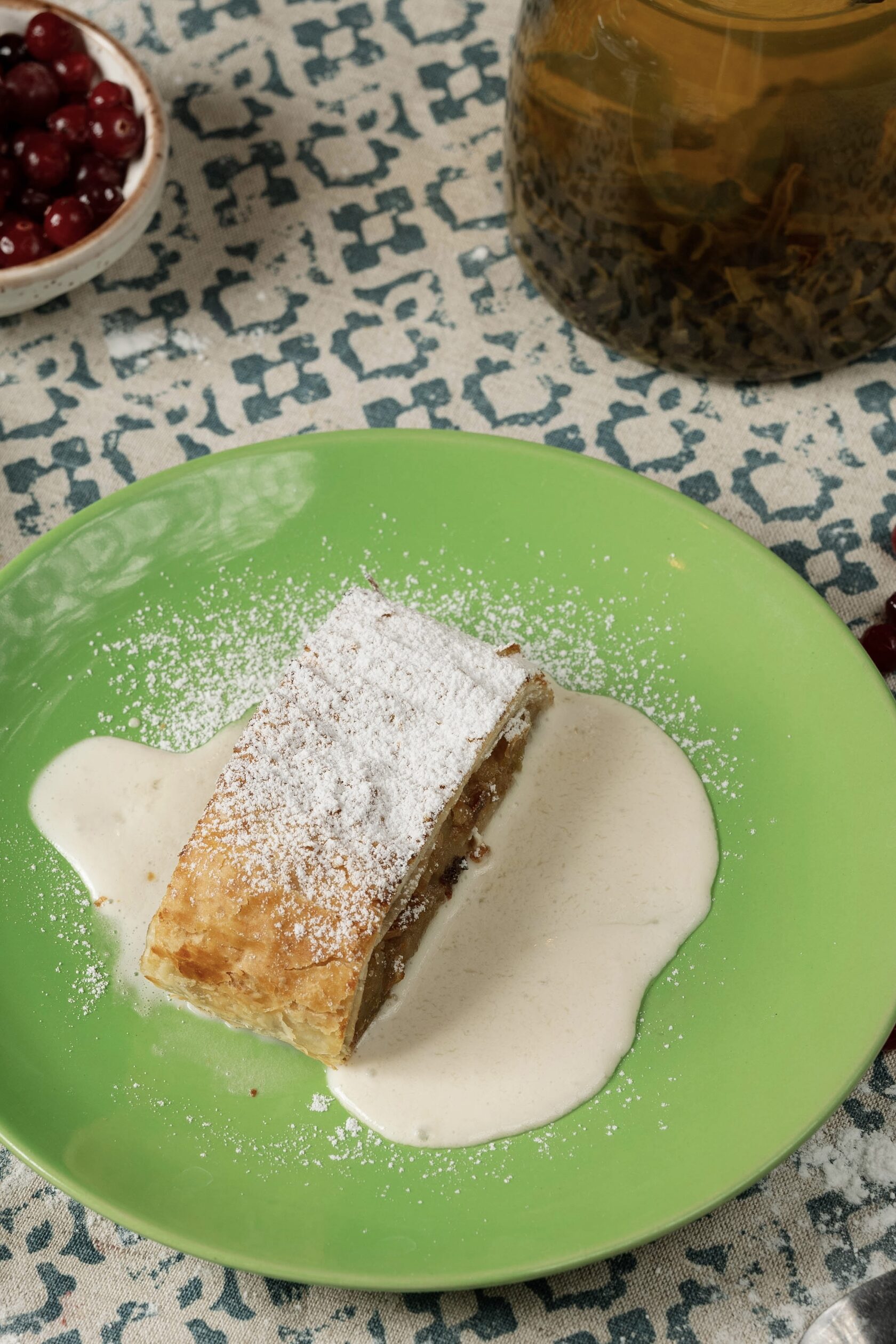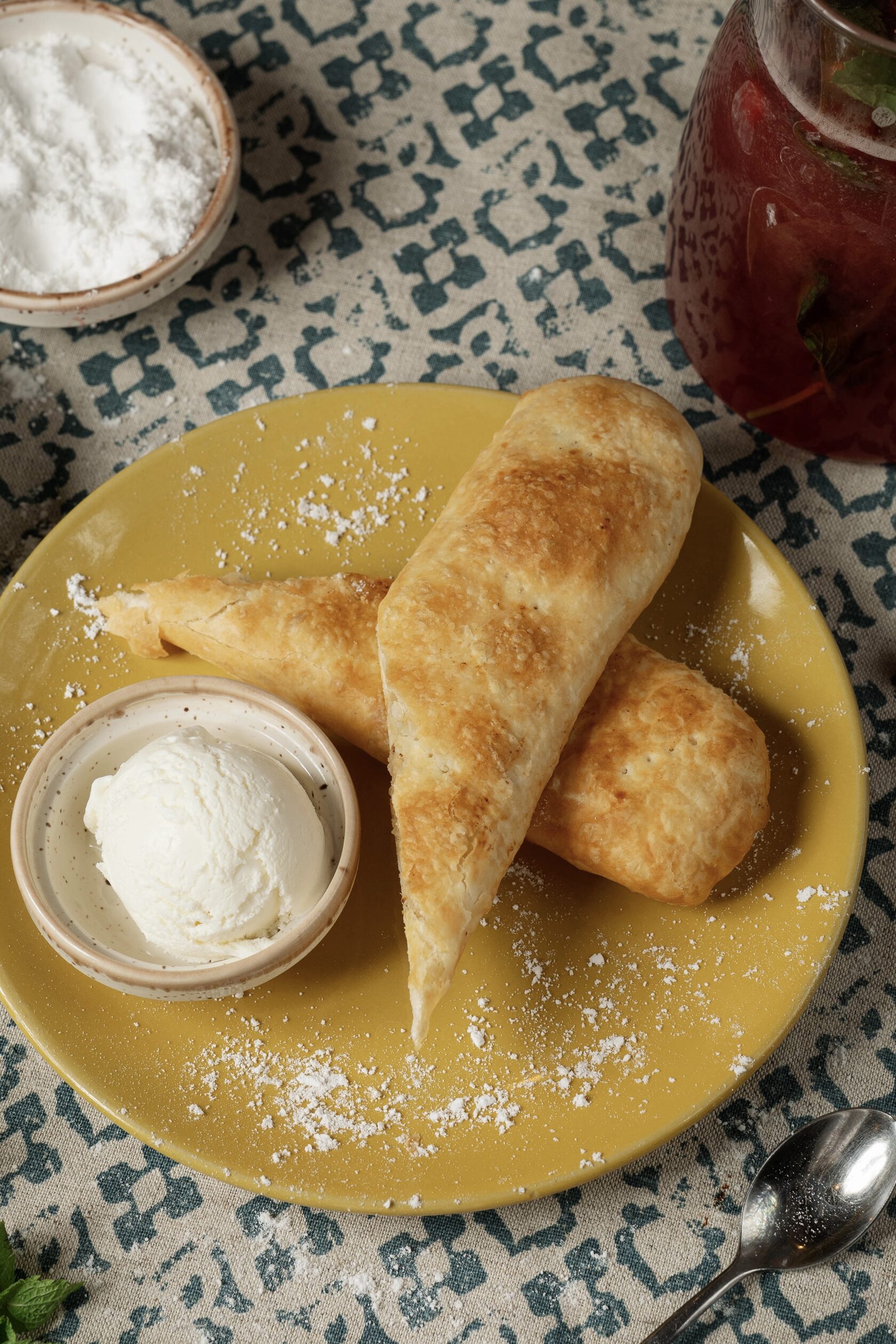Традиционная грузинская слоеная выпечка с ванильной начинкой, подается с шариком пломбира ……вайме, чеми дедааа!!..