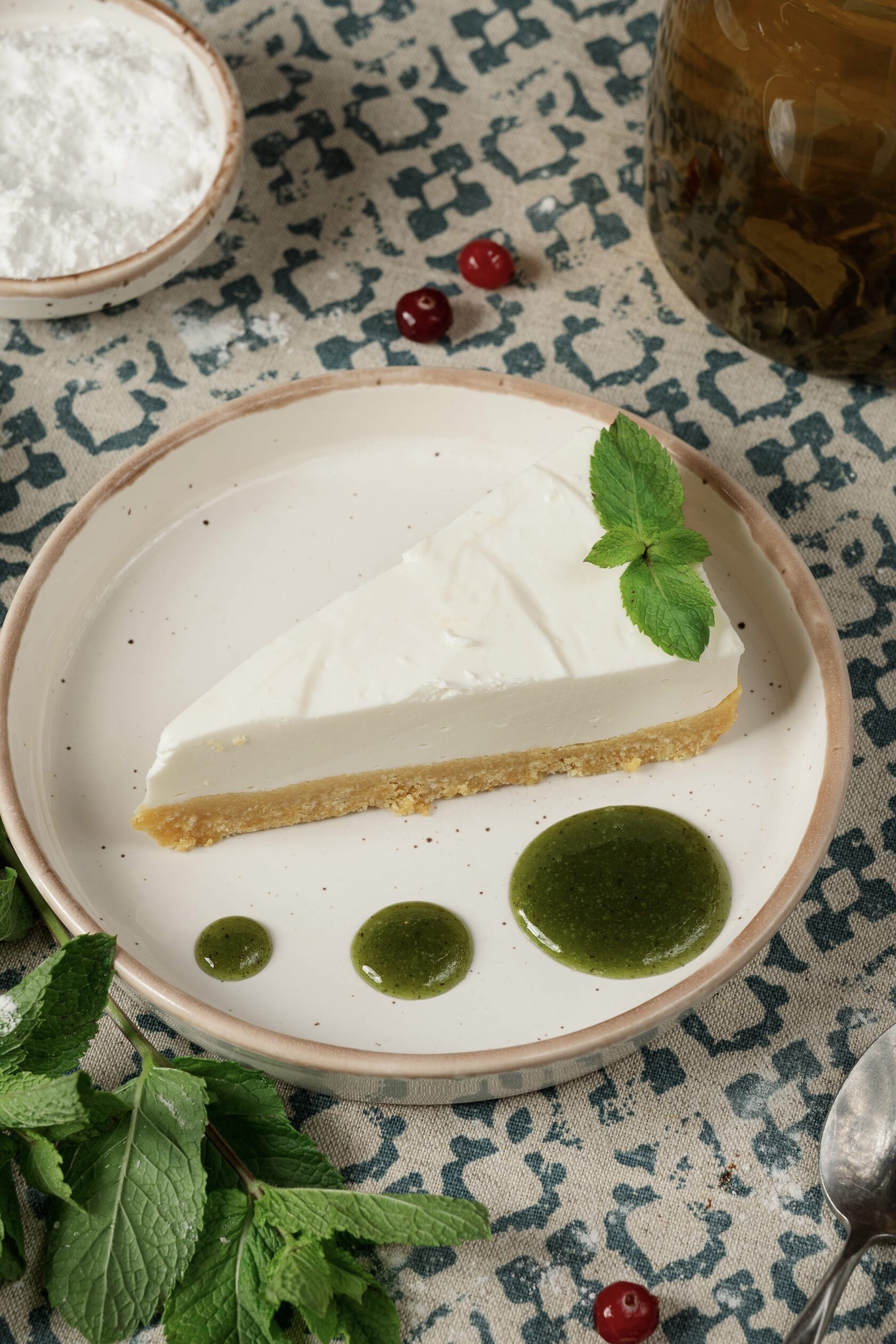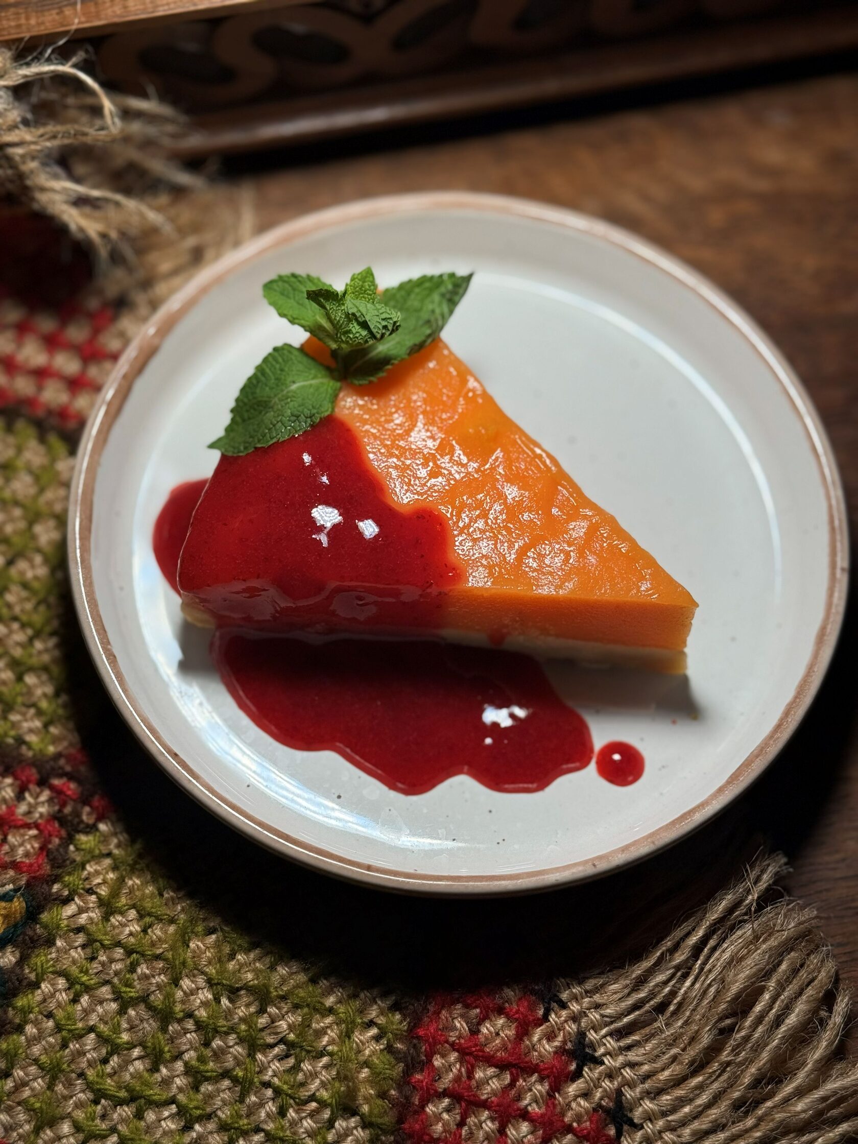Грузинский пудинг из мандаринов с кусочками мякоти и легкой горчинкой на песочном листе