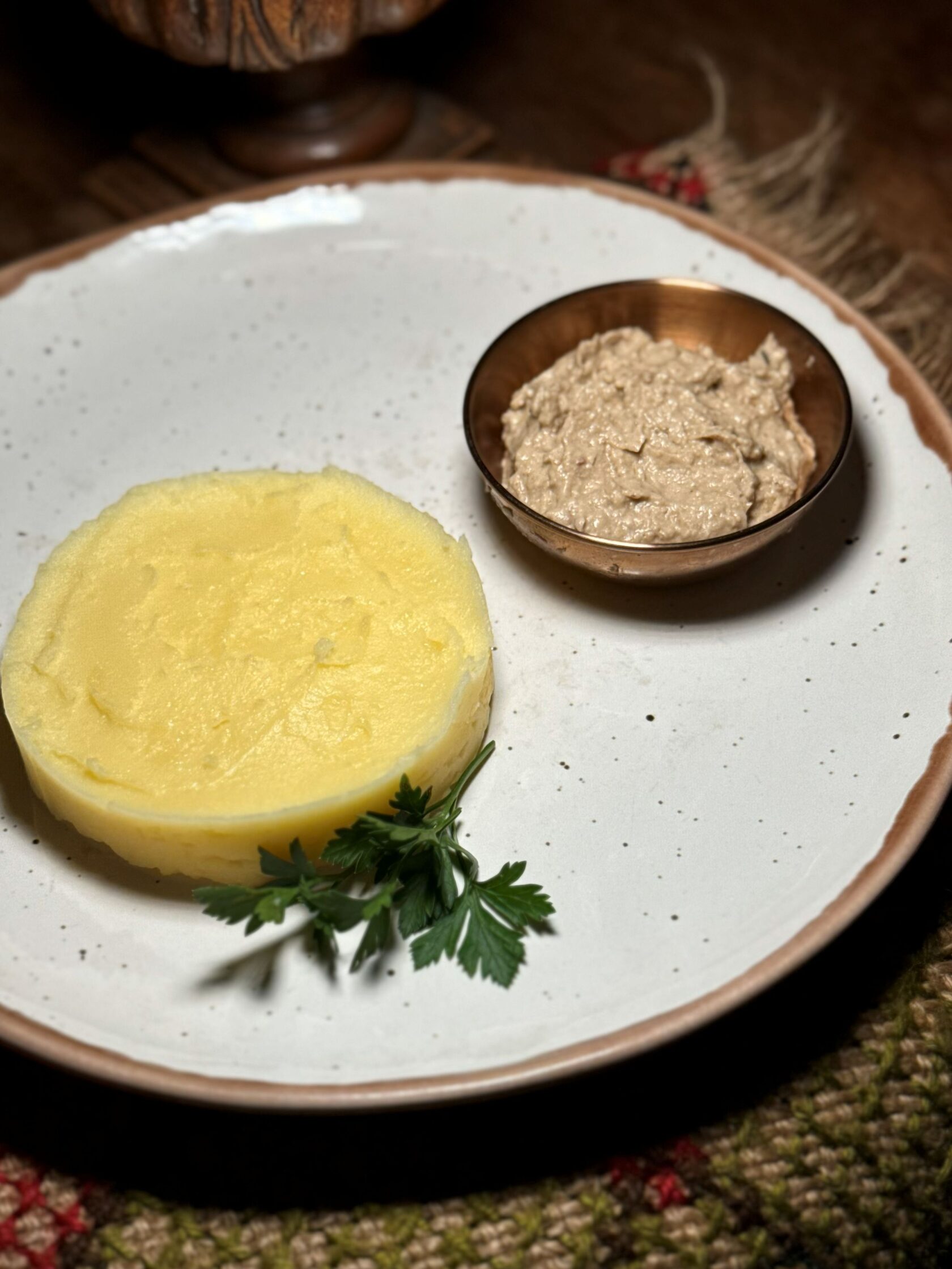 Пюре картофельное с икрой из печеного баклажана