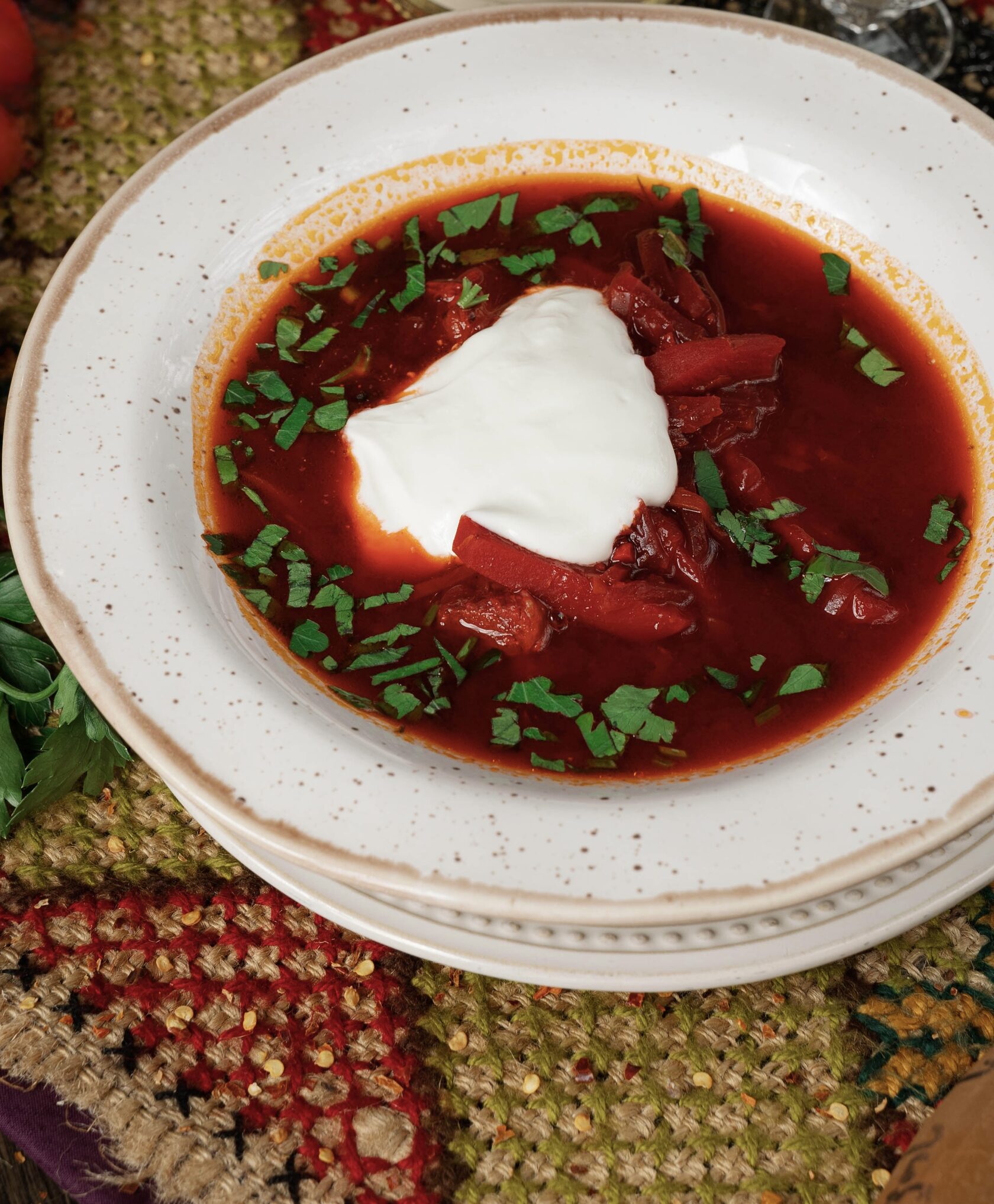 Борщ с говядиной и сметаной